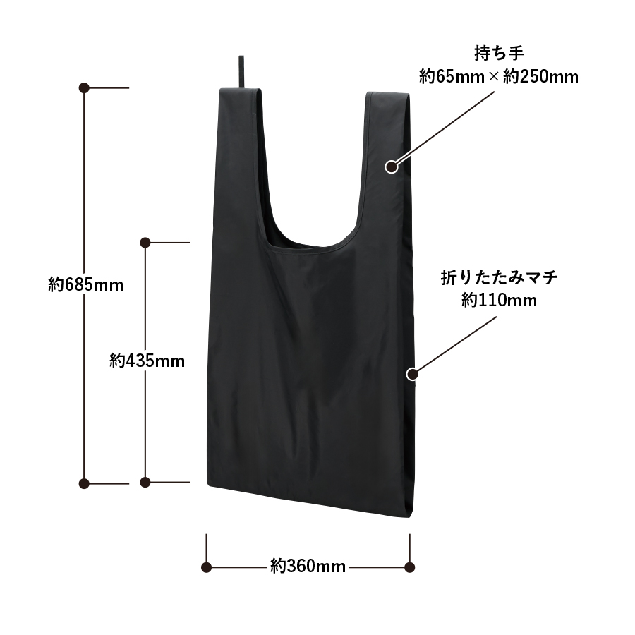 | サイズ | 本体/約360×435(持ち手含む685)(mm)・持ち手/約65×250(mm)・折りたたみマチ/約110(mm) |